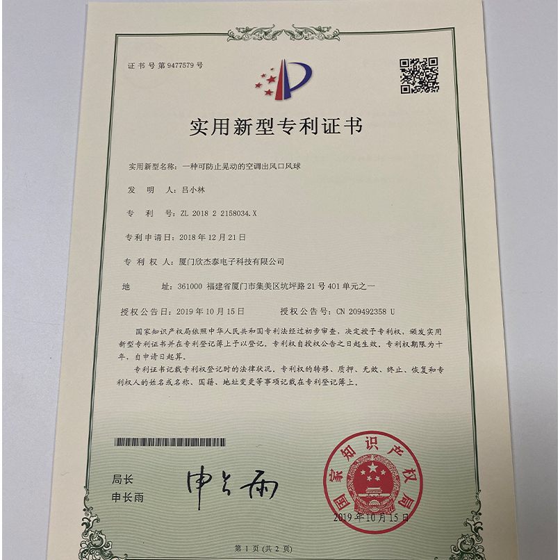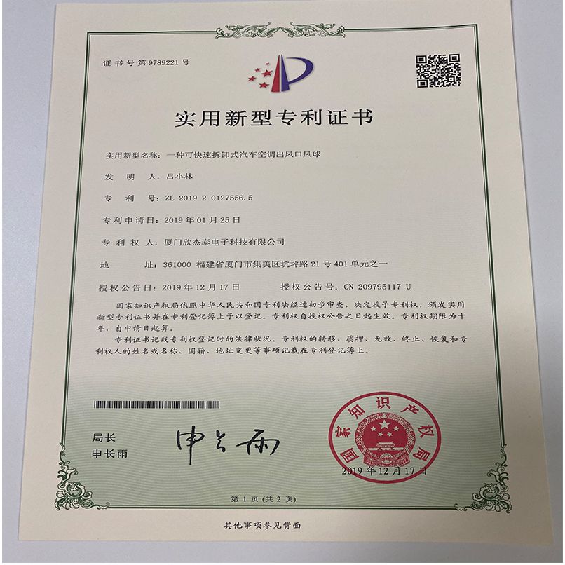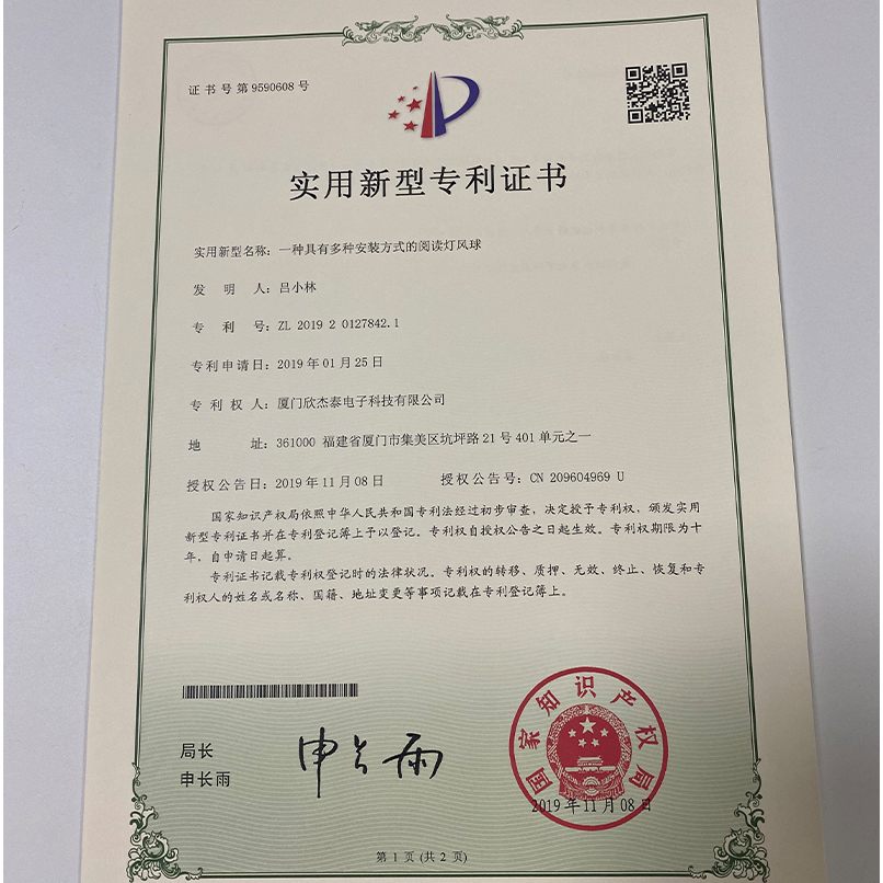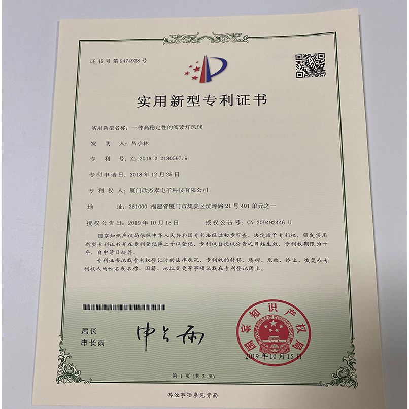 实用新型专利证书